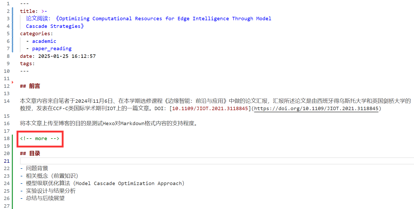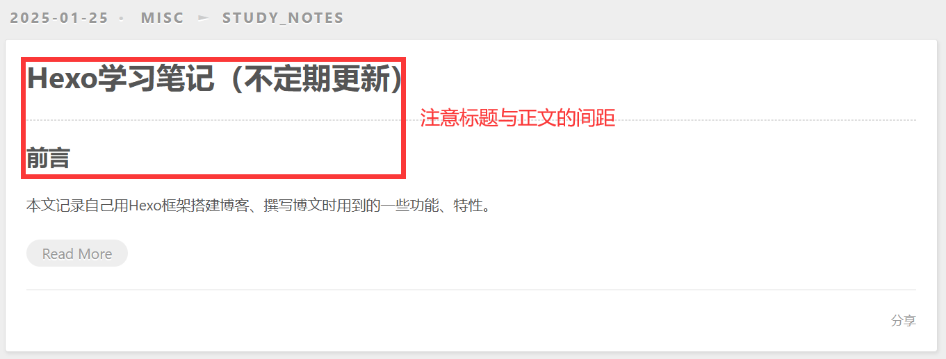 Hexo在主页展示文章时,会默认只显示该行前面的文章内容。