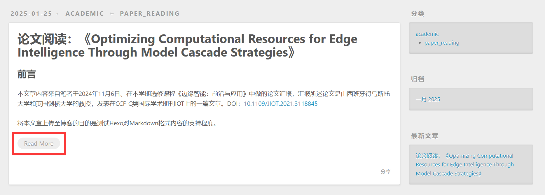 让博文在主页展示时折叠(Read More)
